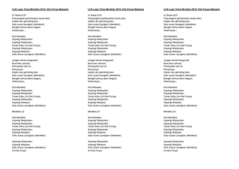 Kita Punya Malaysia Lyrics : Ya malaysia lirik lagu tema merdeka 2018: