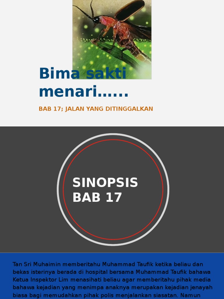 Kita hendaklah tabah dalam menghadapi cabaran hidup. Sinopsis bab demi bab, tema, dan persoalan novel bimasakti menari. Pada permulaan tugasnya dia telah menerima kunjungan sekumpulan pengunjung yang dianggotai oleh 15 orang. Hanya mata manusia sahaja yang tidak dapat melihat. Watak & perwatakan, plot dan nilai pengajaran.
